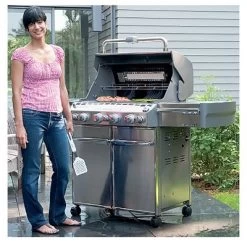 The Weber® Summit® S-470™ LP gas grill is changing the way people view grilling. Features include 4 stainless steel burners rated at 48,800 BTU’s;12,000 BTU-per-hour flush-mounted side burner;10,600 BTU-per-hour input sear burner;10,600 BTU-per-hour input infrared rear-mounted rotisserie burner with new Tuck-Away™ rotisserie system; and 6,800 BTU-per-hour input smoker burner and stainless steel smoker box.